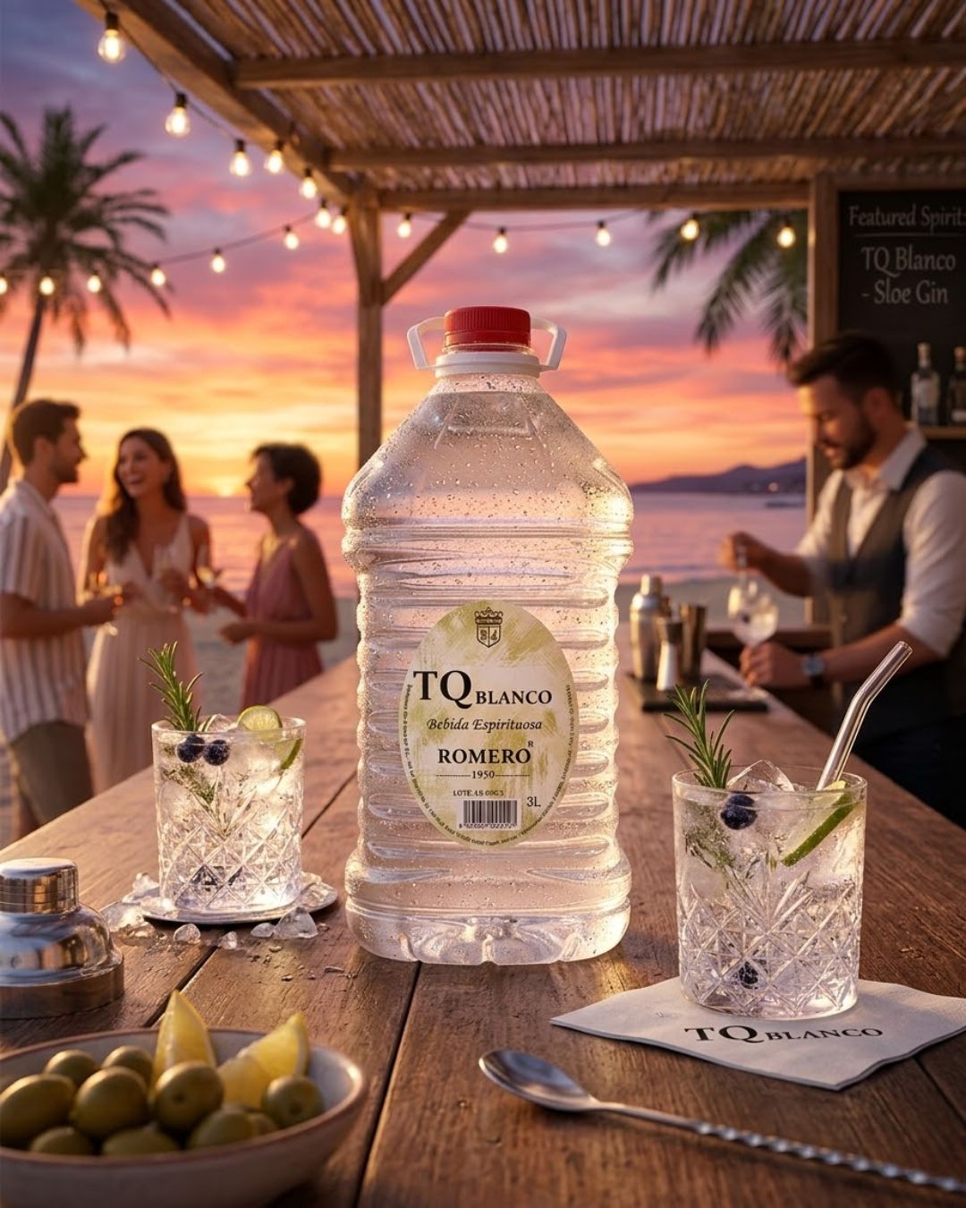 • TQ Sunrise: Una combinación visual y refrescante con zumo de naranja y un toque de granadina, ideal para servicios de tarde y eventos al aire libre.